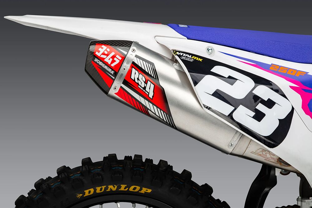 The Yoshimura RS-4 was developed through Yoshimura’s extensive off-road and motocross racing experience. It features a large-volume muffler body designed to maximise exhaust flow while maintaining durability in demanding riding conditions. The internal baffle structure enhances throttle response and mid-to-top-end performance while delivering a refined, race-inspired exhaust note.