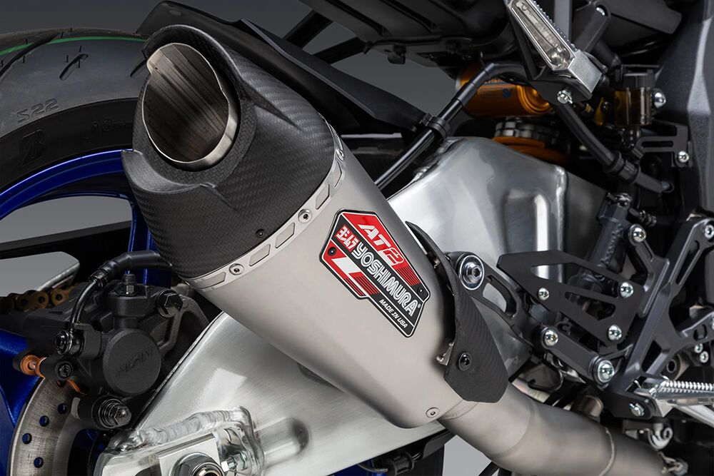Yoshimura AT2 exhaust systems are engineered for performance, durability, and refined sound. Available in slip-on, 3/4, and full system configurations with stainless or carbon muffler options depending on application.